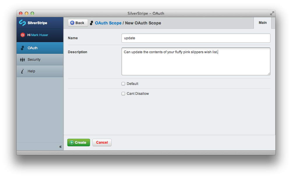 The only thing left to do now is let clients know how they talk to you. There are three parts to this. In the first, the client asks for permission to a user. They do this by sending the user to `https://yoursite.com/oauth/authorise?response_type=code&client_id=<identifier>&scope=<scope1>+<scope2>&redirect_uri=<uri>&state=<state>`. In this URL, `<identifier>` is the client identifier displayed in the CMS; `<scope1>` and `<scope2>` are scopes that the client would like; `<uri>` is the URI to return the user to once they either accept or reject the permission request; and `<state>` is an optional state parameter. These parameters can also be sent as POST parameters.