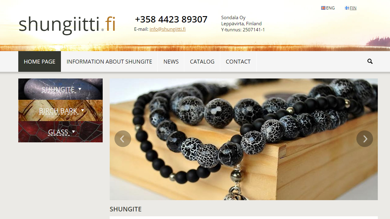 The company "Sondala Oy" sells shungite products by internet. The site contains information about the mineral "shungit".