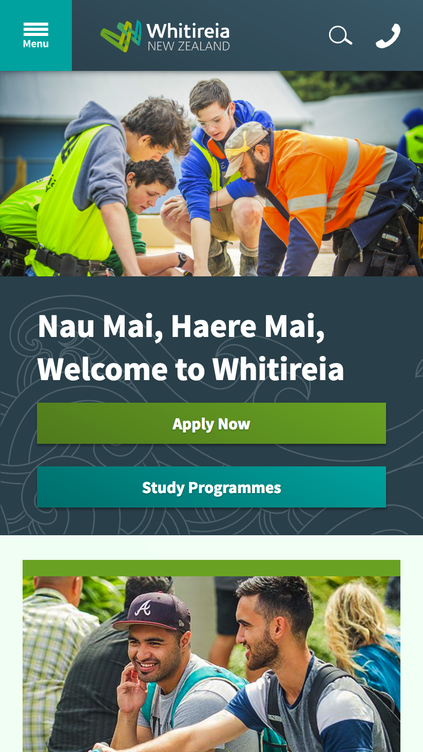The goal of the project was to design and build an easily maintainable website that delivered the best user experiences to existing and new students. The desired outcome of the new site was to increase enrolment and drive engagement to whitireia.ac.nz. Thoughtful additions to the website allow Whitireia staff to cross publish and manage content to on bother their site and the new Te Auaha site, resulting in a leaner approach to running multiple sites.